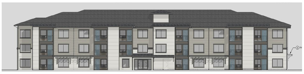 The building is proposed to be designed as a three-story structure constructed of wood frames supported by concrete slabs and perimeter foundations. Exterior finishes are proposed to be a variety of materials using durable and environmentally friendly building materials in a variety of colors throughout the development. All aspects of building construction will comply with quality construction standards to ensure longevity and safety of these high-quality structures.