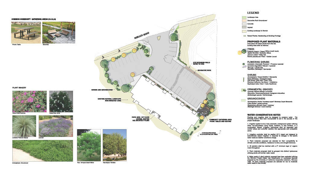 The resident center will include a fully furnished multipurpose room, a kitchen, restroom facilities, laundry rooms, and manager office spaces as well as maintenance and utility rooms. In addition, there will be a leisure open space including a picnic area and space for the residents to enjoy the outdoors. Exterior design features, site layout, and aesthetics will take into consideration the surrounding uses along with the traditional Paso Robles genre.